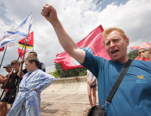 А на берегу ведущие митинга разъяснили отдыхающим на пляже туристам о том, что несколько дней назад Партия регионов, получив с нашей помощью власть на Украине, тут же сдала нас НАТОвским фашистам.