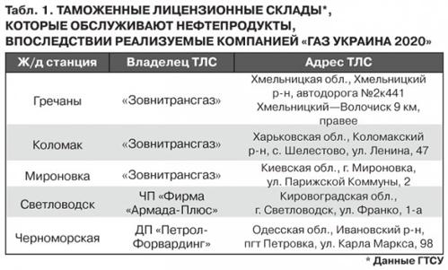 По итогам 2012 г. Минфин констатировал "дыру" в размере 4 млрд грн, образовавшуюся в результате безналоговых поставок почти 1 млн т бензина. Этот объем был куплен автомобилистами по рыночной цене, в которой заложены налоги, однако в итоге до бюджета, а следовательно, и до "Укравтодора" эти деньги не дошли. Из этой колоссальной суммы основная часть, а именно - около 3 млрд грн, растворилась в результате контрабанды. Ее размеры нам удалось подсчитать благодаря совету бывшего главы таможни Игоря Калетника - путем сопоставления данных "Укрзалізниці" о физическом поступлении нефтепродуктов на рынок и Минфина о сумме уплаченного с топлива акциза. Нерастаможенными оказались 700 тыс. т нефтепродуктов, которые прошли через несколько нефтебаз, работающих в режиме таможенных лицензионных складов и начавших свою бурную деятельность в марте-апреле 2012 г. (см. табл. 1). В дальнейшем, по данным участников рынка и отраслевой прессы, эксклюзивным реализатором этого продукта выступает ООО "Газ Украина 2020". До последнего времени такая хлипкая связь базировалась исключительно на такого рода данных. В распоряжении ZN.UA появились первые серьезные факты, позволяющие составить конфигурацию масштабной схемы контрабанды в лицах.