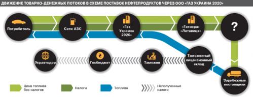 Предположим, что им перечисляются средства за топливо, т.е. эти структуры должны его у кого-то купить на внутреннем рынке или за рубежом. Но по-прежнему не видим мы этих загадочных имен в базе таможенной статистики. Может, они также покупают нефтепродукты далее по цепочке у кого-то внутри страны? Тогда вопрос: а почему "Газ Украина 2020" не может обойтись без этих посредников? Похоже, мы имеем дело с самой элементарной схемой обналичивания средств. (Здесь, пользуясь случаем, хотим передать привет Александру Викторовичу Клименко.)