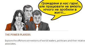 Данный рисунок озаглавил раздел сайта Panama Papers ("Панамские документы") с подписью The power players ("Ключевые игроки"). В том, что лицо на карикатуре может принадлежать именно господину Порошенко может убедиться каждый, изучив базы Offshore Leaks.