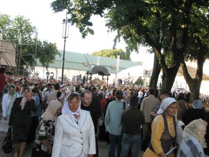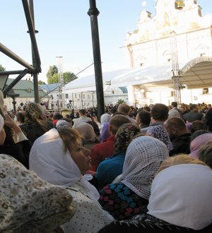 Успенский собор лавры не смог вместить всех пришедших на Богослужение, поэтому Всенощное бдение совершалось на площади перед храмом.