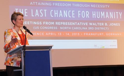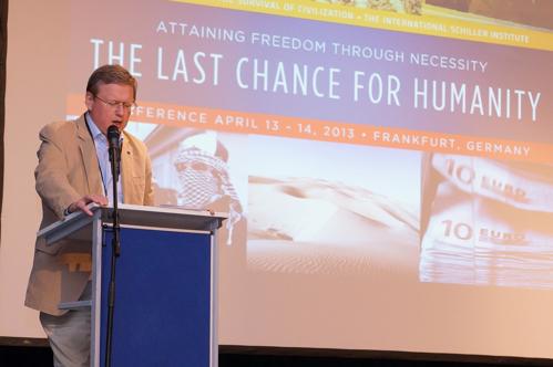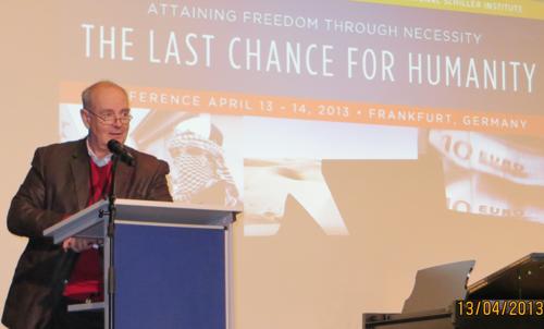 13-14 апреля 2013 г. во Франкфурте-на-Майне, в Германии по инициативе Линдона Ларуша и Хельги Цеппп-Ларуш была проведена Международная конференция "Достижение свободы посредством необходимости: Последний шанс человечества".