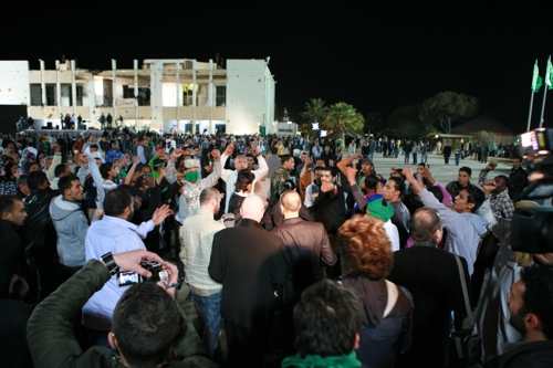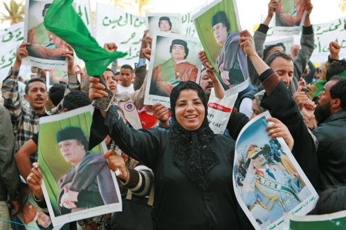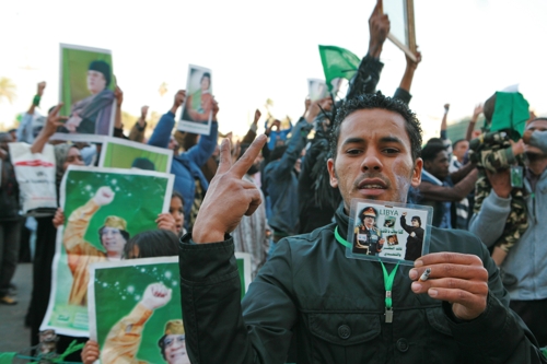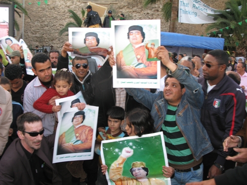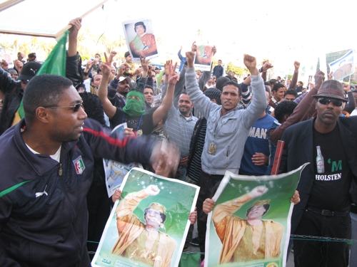 Ливийцы защищают Каддафи. Требуют от фашистов прекратить бомбардировку.
