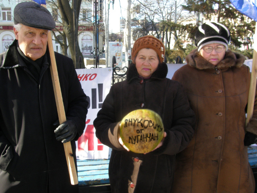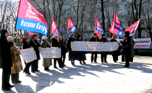 Представители Луганской областной организации Прогрессивной социалистической партии Украины 26 февраля 2011 года, после "суперблагополучного" отчета Президента перед своей страной провели пикет на площади Великой Отечественной войны у памятника "Стела Славы погибшим во время Великой отечественной войны" и поставили свою оценку деятельности Президента!