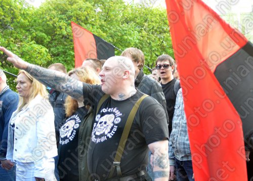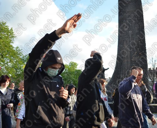 Между тем, как свидетельствуют фотографии на сайте агентства УНИАН, в ходе данного мероприятия его участники использовали нацистскую форму времен Второй мировой войны и нацистское приветствие – вскинутую вверх правую руку.