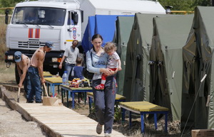 Замглавы МЧС Владимир Степанов уточнил, что беженцев с юго-востока Украины принимают десять регионов России. "За сутки прибыли более тысячи человек - это те, кто пожелал разместиться в пунктах временного размещения", - сказал Степанов.