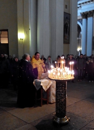 Возглавили молебен благочинный Александро-Невской лавры архимандрит от.Никита (Марков) и иеромонах от.Прокопий (Павлов). По сложившейся традиции, молебен совершен у раки с мощами св.благоверного князя А.Невского, что символизирует единство малороссийской части (украинского) и великороссийской части народа во все времена. В своей проповеди от.Прокопий напомнил всем прихожанам о каждодневном молебне, совершаемом во всех приходах РПЦ МП о уврачевании конфликта на Украине и вразумлении его предводителей. "Не в силе Бог, а в Правде" - слова произнесенные десятки сотен лет тому Александром Невским, живы и поныне, и служат нам несокрушимой опорой в наших испытаниях.