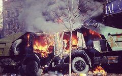Тем временем с Институтской спецназ продвинулся в глубь Майдана, взяв под контроль территорию вокруг стелы Независимости. Дальше он не пошел. Между ним и протестующими образовалась стена огня от подожженных шин.