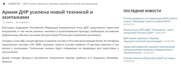 Вопреки официальной линии сепаратистов, указанный ресурс, в частности, утверждает, что ДНР начнет наступление на Светлодарск 8 августа в час ночи.
