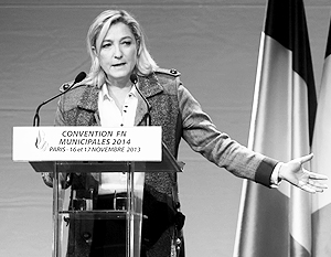 Ле Пен известна своей критикой французского правительства и публичной поддержкой президента России Владимира Путина. Лидер "Национального фронта" также считает, что как для Франции, так и для всей Европы выгодно укрепление отношений с Россией, но сейчас Европа "сильно зависит от воли Вашингтона".