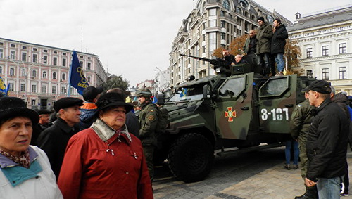 Итогами Майдана киевляне разочарованы, однако, по мнению радикалов, национально-патриотическим духом из-за военных действий в Донбассе пронизана сегодня чуть ли не вся Украина, и поэтому революция продолжится. Неоднократно в течение бурного празднования нового Дня защитника Отчества звучали обвинения в адрес России и «ее «агрессии» на Украине».