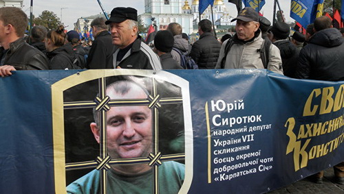 Надо сказать, что украинские националисты кардинально не меняют тезисов, главный из которых: «Либо выборешь украинскую державу, либо сгинешь». Почти все выступающие на митинге, - а это были лидеры партии «Свобода» Игорь Мирошниченко, Олег Тягнибок, Руслан Кошулинский, бойцы добровольческих батальонв, члены «Правого сектора» и другие - говорили о «злочинной владе», сравнивая нынешнюю с предыдущей, свергнутой ими же на Майдане в 2014-м году.