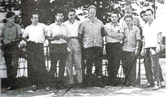 Фукс и его команда. Слева направо–Шевченко Г. Н.; Золотарев В. И.; Каган И. Л.; Лавит Л. М.; Фукс Г. Б.; Вольпов М. М.; Столярский Н. А; Маргенко А. И.; Айзенштейн С. С. и Файнштейн Б. А.