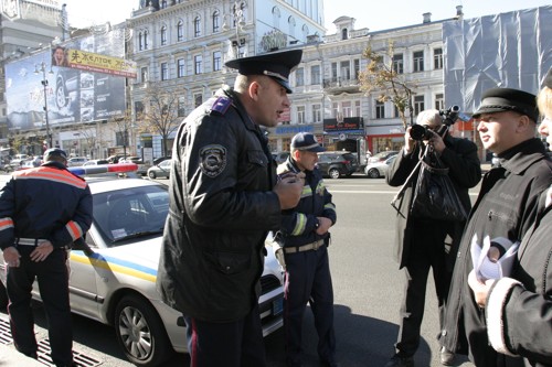 Хотя законная мирная антифашистская акция "Останови фашизм! Защити подвиг наших отцов и дедов! Защити память жертв, павших от рук фашистских оккупантов и их пособников из ОУН-УПА" закончилась в Парке Славы возложением цветов, однако милиция до этого момента держит заблокированной машину "Газель" с озвучивающей аппаратурой на Крещатике (машина, которая была заранее внесена в уведомление, направленное в Кабинет министров Украины).