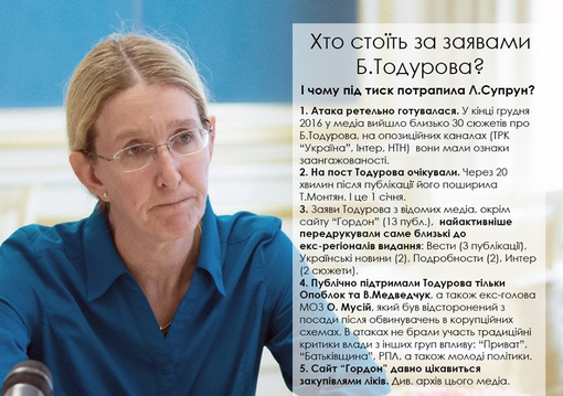 Стоит отметить, что любая критика деятельности и.о. министра вызывает бурную реакцию у отдельных малоизвестных организаций, которые по-видимому, пытаются на этом пиариться. Так, некий "Центр контент-анализа" якобы "проверил", кто стоит за нападками на Супрун. И обвинил в атаках ряд крупных СМИ.