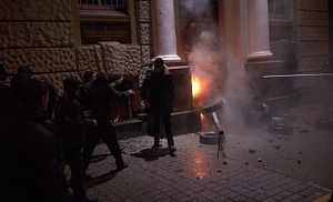 Управления СБУ люди взяли штурмом: выломали двери, бросали зажигательные смеси. В здании СБУ начался пожар. В помещении УМВД протестующие выбили окна на первом этаже и в подвале.