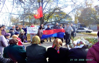 Сегодня 17-го ноября в г. Мерефа Харьковской обл. состоялось важное мероприятие. Народ протестовал против строительства бактериологической лаборатории. После нескольких выступлений и принятия обращения, было принято решение пойти искать председателя городского совета. Искали на переходе через трассу Харьков-Симферополь. Милиция вынуждена была перенаправить движение через другие улицы г. Мерефы. Перекрытие продлилось около 25 минут.