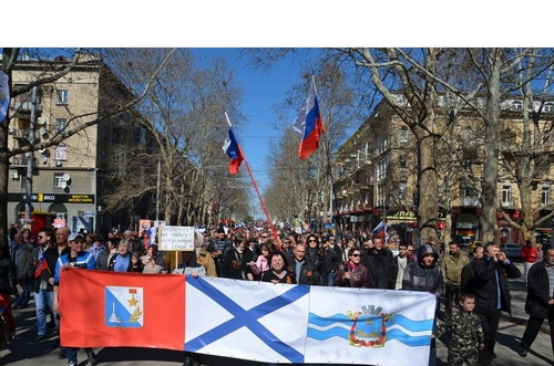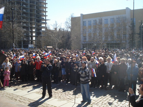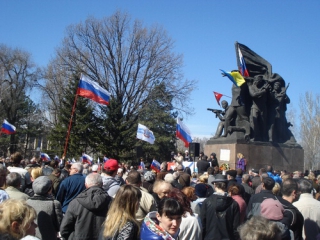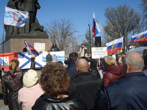 23 марта, на площади у памятника воинам-Ольшанцам, прошёл масштабный митинг "Николаев - Севастополь". На площади собралось много тысяч людей, которые пришли на этот митинг как на праздник, как в те далёкие годы, когда звучали советские песни, под которые хотелось плясать и петь. Когда начался митинг, то и дело кричали: "Ура", "Украина, Россия, Беларусь", "Вместе мы едины, мы непобедимы" и т.д.