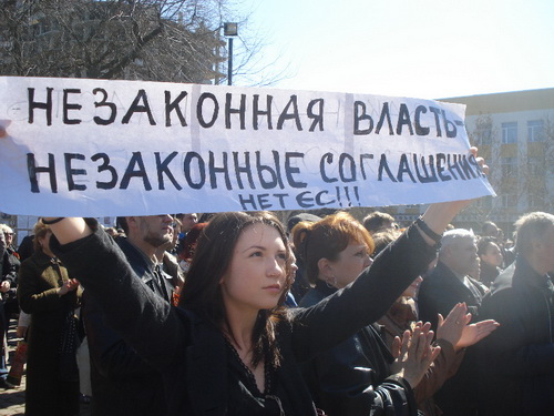 Она сообщила, что на сегодняшний митинг должны были приехать представители Севастополя. Но украинские пограничники не пропустили делегацию. По мнению Шеслер, новые власти "боятся правды, которую принесут оттуда севастопольцы и крымчане". И когда Шеслер вспомнила о крымском референдуме и сказала, что его результаты полностью отразили волеизъявление крымчан, 97% которых проголосовало за вхождение в Россию, раздались крики: "Ура!".