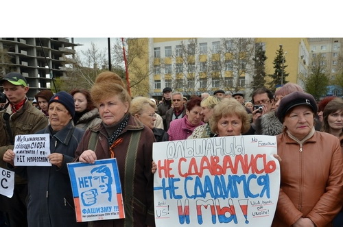 13 апреля, в Николаеве на площади у памятника воинам-десантникам Константина Ольшанского прошел многотысячный митинг "антимайдана". Некоторые участники выстроились у постамента с многочисленными плакатами и баннерами, призывающими к дружбе с братским народом России и осуждающими "новую власть" в их деяниях, другие размахивали маленькими триколорами, флагами победы.