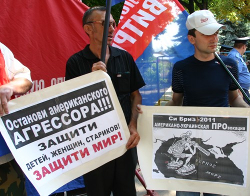 "Единственная цель учений Си-БРИЗ 2011 – это провокация "Монтерея" в территориальных водах Украины. И правильно, что Россия высказала претензии к натовскому кораблю системы ПРО, это претензия, прежде всего, относится к Украине , к ее высшему руководству . "Монтерей" в Одессе - повод для России перенацеливать русские ракеты на объекты, которые угрожают их национальной безопасности, а это может привести к братоубийственной войне", -заявил в своем выступлении полковник – афганец Валерий Сергачев .