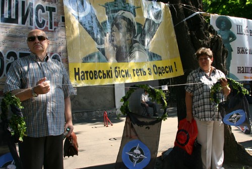 С таким лозунгом выступили активисты – витренковцы пикетируя сегодня натовцев и украинского военное руководство около Дома Офицеров В Одессе .