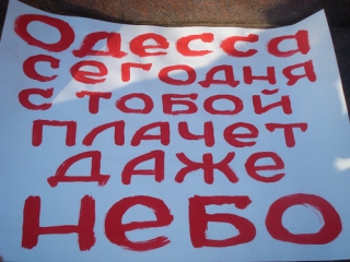 После панихиды участники митинга Скорби снова собрались у памятника, где было приготовлена поминальная трапеза. На пьедестале в это время звучали пронзительные стихи поэтессы В. Вельковой о сгоревших и замученных одесситах, стихи других поэтов о тех, кто позволил своим равнодушием и предательством совершить это злодеяние... Но особенно больно было слушать стихи В. Негатурова, одесского поэта, убитого на Куликовом поле в тот злосчастный день... Читавшие его стихи, просили собравшихся всегда помнить о таких героических людях. Несмотря на насаждаемую властью атмосферу страха и безнадеги, они не прекращают борьбу, пусть в самом малом: нести другим слово правды, не сдаваться и объединяться для совместных действий... Даже если нас останется совсем немного, даже если для некоторых это будет последний митинг...