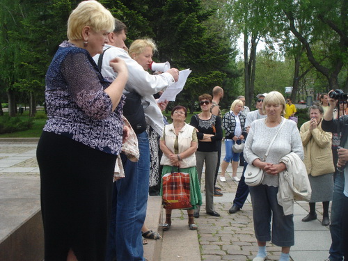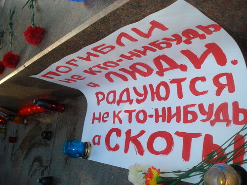 Несмотря на запреты (накануне антимайдановцам, защитникам памятника 68 Героев – Десантников, было предложено не собираться на митинги в целях безопасности до 9 мая) - многие все же пришли на площадь помянуть погибших одесситов. Не смогли не прийти – душа плачет, разум отказывается принимать чудовищность содеянного киевской хунтой, страха нет. Страх всё больше улетучивается, остаётся только ненависть к тем подонкам ,которые уничтожают инакомыслящих.. Известия о пока еще малых победах антифашистского сопротивления – как бальзам для измученных душ: там сожгли помещение "Приватбанка" ненавистного Коломойши, там – вертолет сбили, там – почему-то стали гореть машины сторонников Евромайдана...