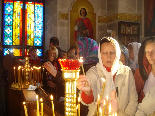 Затем участники митинга Скорби и Памяти последовали на панихиду в близлежащий храм святого Николая. Священники отслужили молебен о невинно убиенных и погибших героях. Вечная Память и Царствие Небесное нашим Героям! Прихожане зажгли свечи, молились и плакали...