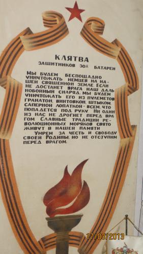 Преклонились перед подвигом защитников - В.Алкснис, Н.Витренко, В.Марченко, В.Сергачев, Е.Дубовик, А.Меркулов. Они все были едины в необходимости защиты подвига бойцов этой батареи в годы Великой Отечественной войны. Слова клятвы бойцов батареи соединили наши сердца, помыслы и цели.