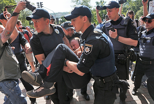 В Киеве состоялся Марш равенства в защиту прав ЛГБТ или, как его называют в народе, гей-парад. В мероприятии, по оценкам полиции, приняли участие около тысячи человек, на каждого - по шесть силовиков охраны. Что происходило в украинской столице, почему удалось избежать массовых потасовок и как горожане реагировали на происходящее, описал киевский журналист по просьбе «Ленты.ру».