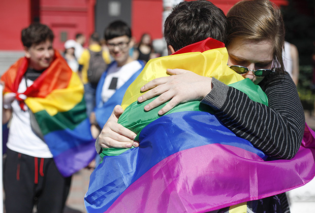 «Европа неоднократно выдвигала ультиматум - либо не ущемлять права ЛГБТ, либо никакого безвизового режима. Рада приняла закон о сексуальных меньшинствах в Трудовой кодекс. Теперь запрещается любая дискриминация, вне зависимости от цвета кожи, сексуальной ориентации, наличия СПИДа», - разъясняет политическую подоплеку один шествующий другому. «С другой стороны, странно, почему власть говорит, что однополые браки на Украине легализованы не будут», - дополняет его товарищ. Видно, что марширующие знают матчасть и за ситуацией в стране следят. Соответствующие заявления в самом деле в разное время делали и глава правительства Владимир Гройсман, и президент Петр Порошенко.