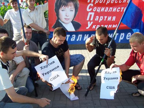 Активисты антинАТОвского движения сожгли Хартию УКРАИНА-США о стратегическом партнерстве, а также НЕВЫПОЛНЕНЫЕ предвыборные обещания Партии регионов.