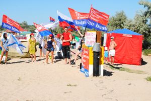 Комендантом палаточного городка назначен председатель Евпаторийской организации Партии "Киевская Русь" Николай Ковалев. Городок обеспечен круглосуточной связью и интернетом. А каждый вечер здесь работает полевой кинотеатр с демонстрацией последних видео новостей о политической ситуации в стране и мире.