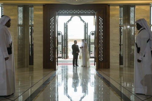 В присутствии президента Порошенко и эмира Катара шейха Тамима бен Хамада Аль Тани было подписано соглашение между Кабинетом министров Украины и правительством Катара о военно-техническом сотрудничестве.