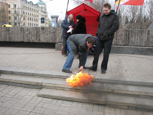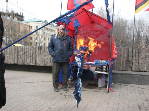 На родине Януковича в Донецке, витренковцы осудили агрессию НАТО против Ливии, лакейскую позицию украинской власти и сожгли НАТОвский флаг