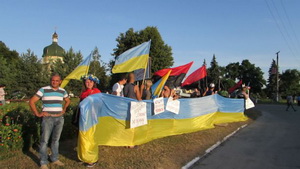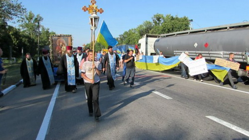 На границе Харьковской и Полтавской областей несколько десятков националистов встретили крестный ход православной церкви Московского патриархата.