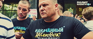 На митинг под Генпрокуратуру в поддержку ляшковца Андрея Лозового Филатов явился в черной футболке с надписью "Накаченный ублюдок".