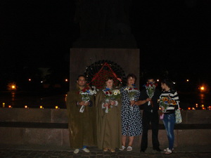 В 4 часа утра группа активистов возложила венки и букеты живых цветов к Мемориалу героям-ольшанцам, к вечному огню, зажгла свечи, почтили минутой молчания тех, кто в тот роковой 41 год первым принял огонь на себя.