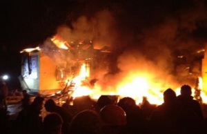 Сейчас под частью внутренних войск на вул. Стрыйской находится около 10 тыс. человек. В то время как одни протестанты пытаются потушить пожар в казарме, остальные продолжают бросать "коктейли Молотова".