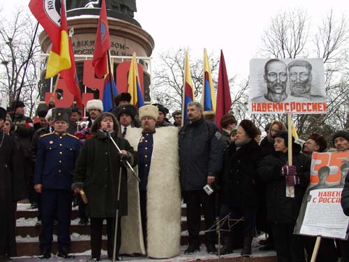 Собрав 17 января 1654 г. казацкую Раду в Переяславле (поэтому и получившему название Переяславль-Хмельницкий), Богдан поставил вопрос жетско: "Под кого пойдем? Под польского короля, крымского хана, турецкого султана или царя московского?" И единодушно вымолвила громада: "Под царя московского! Навеки с Россией!".