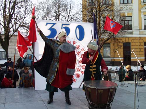 А наше великолепное шествие по Крещатику потом завершилось отличнейшим костюмированным концертом на Софийской площади, рядом с памятником Богдану Хмельницкому.