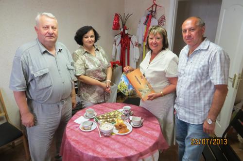 Состоялась наша встреча и с украинской диаспорой. Её возглавляет сейчас бывший винничании Александр Васильевич Черепенин. Почему бывший? Потому что ныне выходцы из Украины там себя называют с юмором - хохмари (хохлы марийские). С любовью вспоминают Украину, і пісні співають, і борщ варять, а прикипели душой уже к земле марийской. Да вообщем это абсолютно чётко видно из фильма, который они нам подарили (см. видео ).