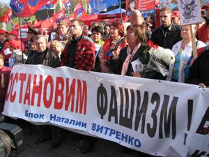Наталья Витренко: Сейчас этот закон не пройдет. Но он очень важен для Партии регионов, потому что Партия регионов раскручивает это как спектакль, чтобы потом доказать, что они якобы против фашизма. 18 мая они в Киеве массовку организовали. Это настолько оскорбительно, это настолько фальшиво, что просто омерзительно. И все это делается вместо того, чтобы отменить этот Указ, нацистский Указ Ющенко, вместо того, чтобы запретить парию "Свобода" (запретить – это то, что требуют резолюции ООН), потому что эта партия носитель - национал-социалистической идеологии, осужденной человечеством идеологии, идеологии, которая, безусловно, приведет к человеческим жертвам, так как она генерирует ненависть к другим нациям. Да, "свободовцы" ходят открыто по Киеву и кричат "Москалив на ножи", "Слава Украине - смерть врагам!". Ситуация тяжелейшая, потому что эта зараза распространяется очень быстро по всей территории Украины, особенно действует на молодежь. И футбольные фанаты у нас на матчах и после матчей идут колоннами и кричат именно это: "Слава Украине – смерть врагам!"; "Украина для украинцев" – это то, что заложено Донцовым в эту идеологию. А Донцов – это украинский Ницше, почему и называется украинский интегральный фашизм – это просто разновидность фашизма.
