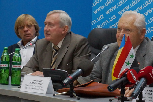 В Киеве в ИА "Укринформ" 04.09.2013 состоялась пресс–конференция "Руки прочь от Сирии". В ней приняли участие Чрезвычайный и Полномочный посол Сирийской Арабской Республики в Украине Мохаммед Саид Акиль, председатель Прогрессивной социалистической партии Украины, д. э. н. Наталия Витренко, народные депутаты Украины Владимир Петренко и Владимир Марченко, глава Сирийской диаспоры в Киеве Имад Заза, журналисты Дарья Карякина и Игорь Слисаренко, режиссер Юрий Молчанов. Вёл пресс–конференцию президент общества дружбы "Украина–Сирия" Анатолий Доманский.