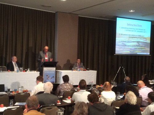 Вашингтонского Институт Брукингса и Вашингтонгского Атлантического Совета высказывается требование $ 1 млрд. военной помощи от США и в год для поддержки существующего режима на Украине. То же требуется и от стратегических союзников США по НАТО. Участники конференции приводили многочисленные примеры подобного давления со стороны США в вопросах конфликта на Украине. Однако австралийские участники конференции высказывали обеспокоенность тем, что подобная позиция администрации Барака Обамы может поставить мир на грань Третьей мировой войны. С воодушевлением было встречено видео выступление лидера Прогрессивной социалистической партии Украины Н. Витренко, давшей трезвый анализ событий последних лет на Украине и подлинного характера нынешних киевских властей. Однако политическое равновесие сегодня является слишком шатким, чтобы можно было безответственно раскачивать лодку международной безопасности, поэтому украинскую ситуацию следует урегулировать политическими методами, конечно, не в ущерб интересам Росси. Австралийская общественность также не одобряет введение экономических санкций против России.
