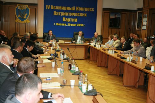 20 мая 2010 года в Москве (в Государственной Думе Российской Федерации) прошёл IVВсемирный конгресс патриотических партий. Организатором этого мирового форума выступила Либерально-демократическая партия России. Главная тема, обсуждавшаяся на Конгрессе сформулирована так: "Роль и значение политических партий в условиях глобализации и мирового финансового кризиса".