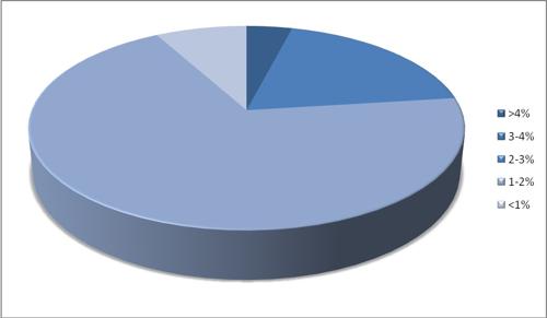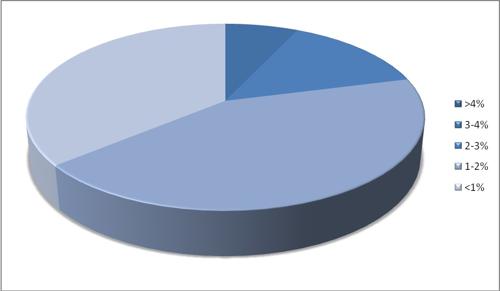 Сравнение стран-членов НАТО и внеблоковых европейских государств по критерию удельного веса военных расходов в структуре ВВП показывает, что доля военных расходов в структуре ВВП большинства стран-членов Альянса (69%) находится в рамках от 1% до 2% (рис. 1). У внеблоковых европейских стран аналогичные показатели имеют 43% государств, но у 36% внеблоковых стран доля военных расходов не превышает 1%, тогда как в группе стран-членов альянса этот класс составляет всего лишь 8% (рис. 2).