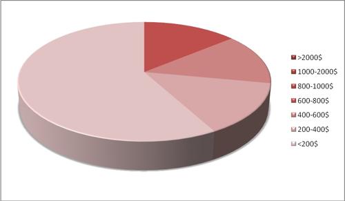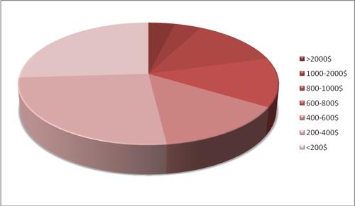 Сравнительный анализ стран двух целевых групп по второму критерию - объему ВВП на душу населения - показывает, что большинство внеблоковых европейских государств (58%) относятся к первому классу, где данный параметр не превышает 200 долл. на человека (рис. 3).