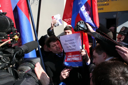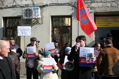 Сегодня 23 февраля – в день Советской Армии и Военно-морского флота, в столице Крыма, г. Симферополе кучка профашистского сброда пыталась провести позорную презентацию книги о батальоне "Нахтигаль". Узнав о предстоящем акте вандализма над историей нашей Родины, активисты Блока Наталии Витренко во главе с депутатами и Председателем Крымского Рескома ПСПУ Валерием Ивановым, вышли к месту презентации, чтобы выгнать прочь бандеровских недобитков с героической крымской земли, пропитанной кровью своих доблестных защитников и орошённой слезами тысяч матерей и вдов.
